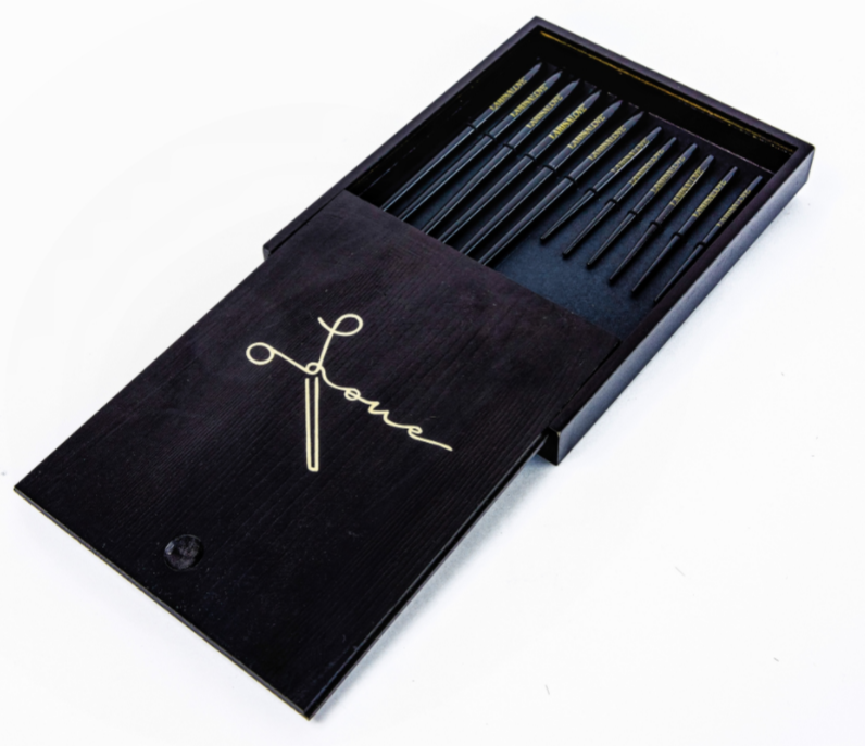 The modern handcrafted wooden box comes with twelve hair twigs, six 11 cm & six 22 cm.