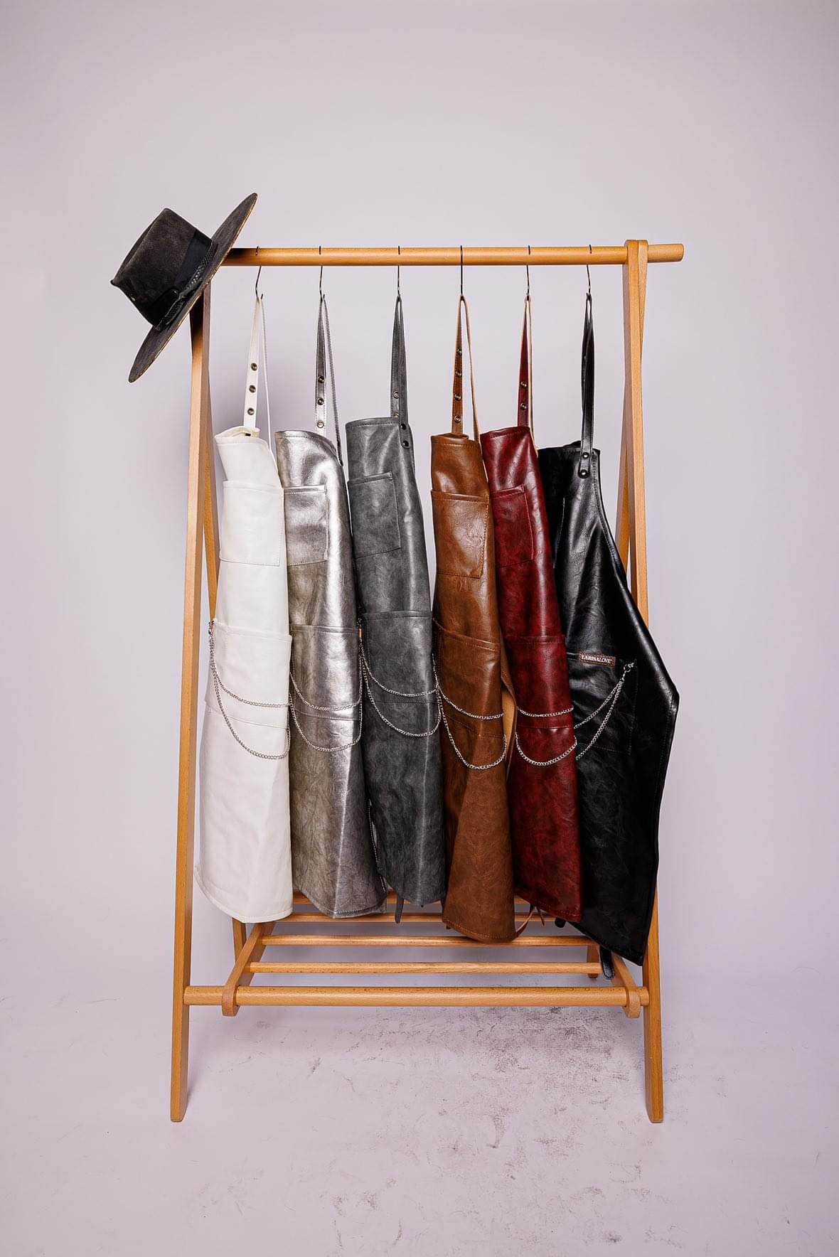The Punk Luxury Collection will help you embrace your inner punk rocker while making a statement of authenticity in a big way. For the artist whose style is a little more rebellious, these aprons have serious attitude! Aprons help you keep your clothes clean and tidy, and let you work more confidently in style. Heavy-duty vegan leather aprons with rockin' chain detail and slit up the thigh for added flair.
