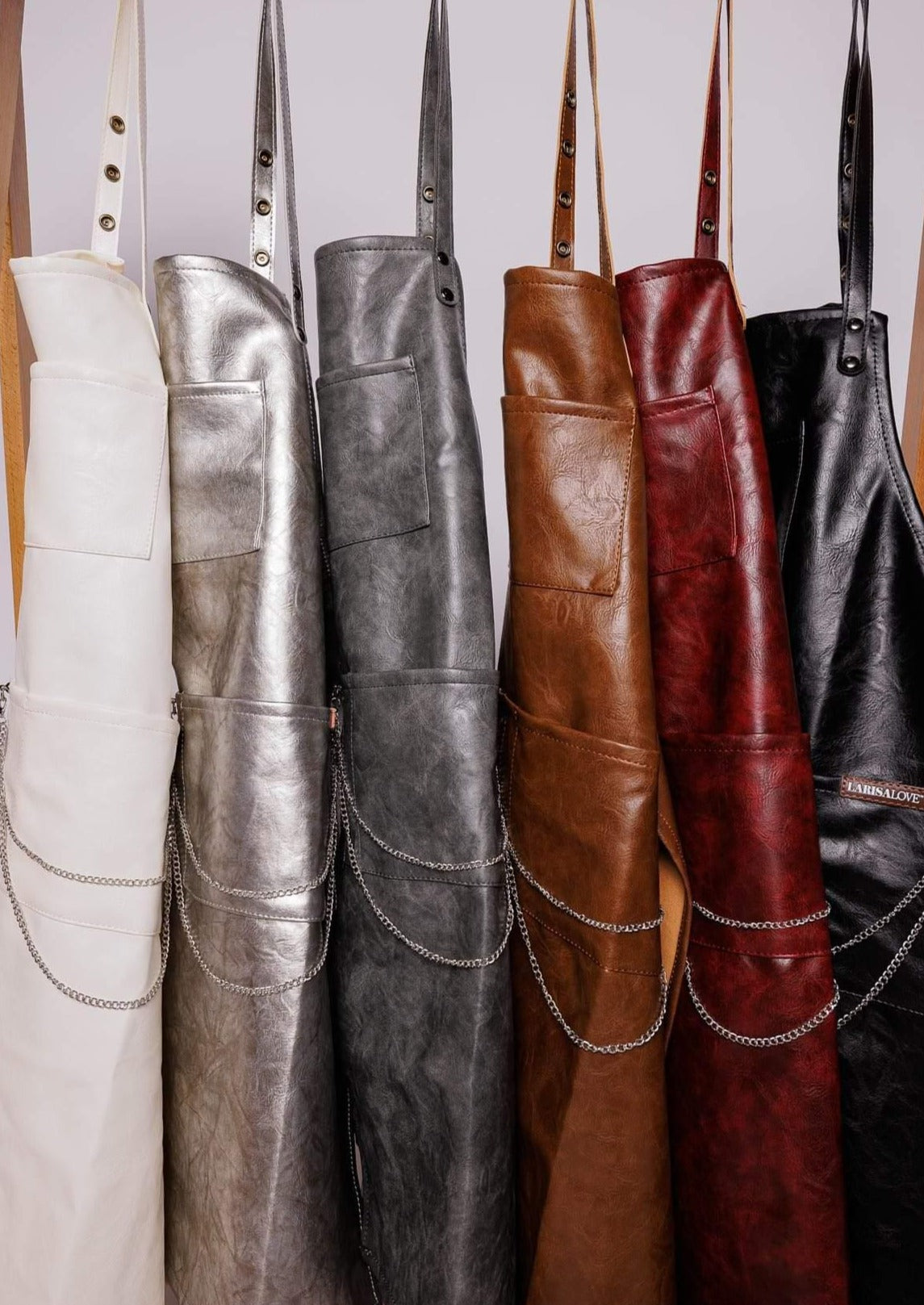 The Punk Luxury Collection will help you embrace your inner punk rocker while making a statement of authenticity in a big way. For the artist whose style is a little more rebellious, these aprons have serious attitude! Aprons help you keep your clothes clean and tidy, and let you work more confidently in style. Heavy-duty vegan leather aprons with rockin' chain detail and slit up the thigh for added flair.