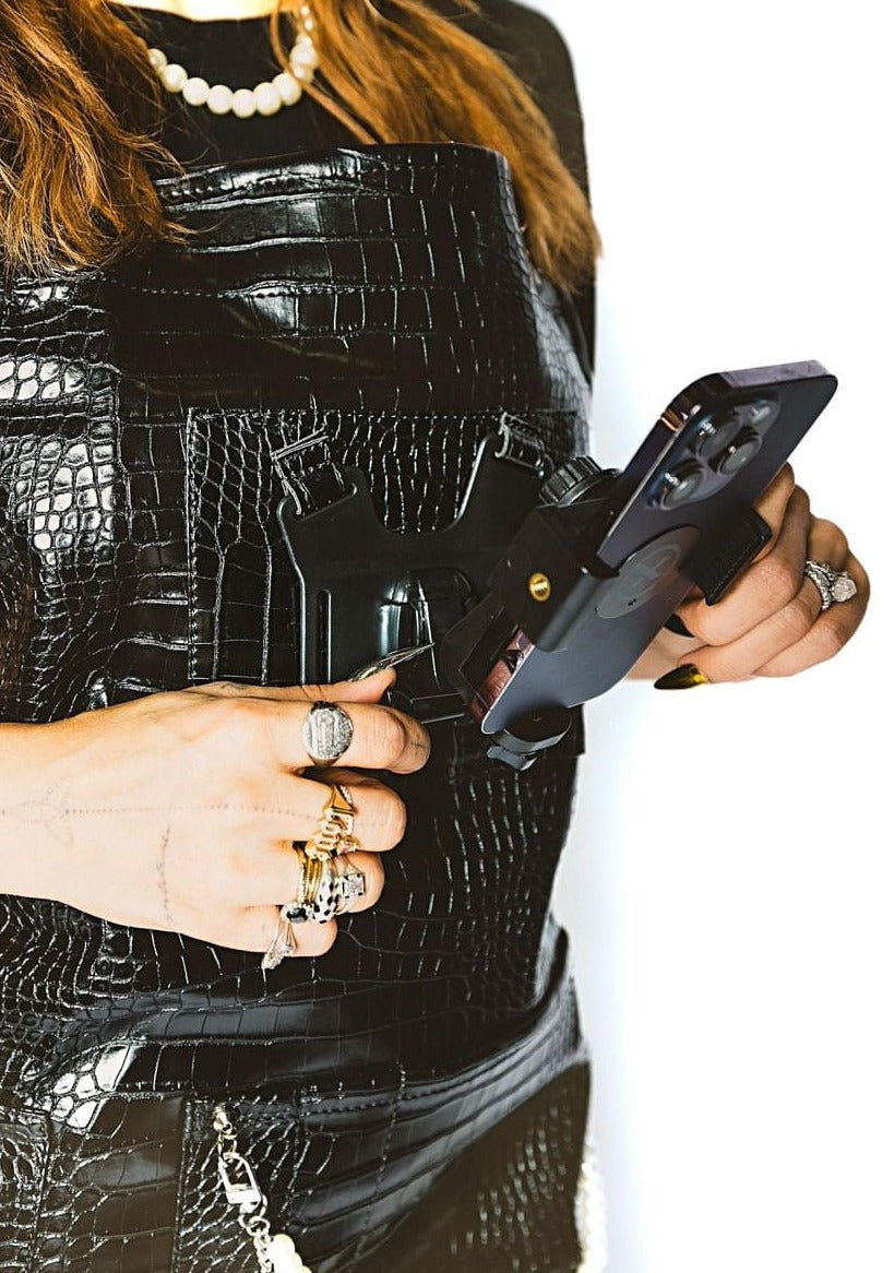 The Vincent features a specialized holder that securely holds your phone, allowing you to film and capture memorable moments of the creation process without the need for assistance or holding the device in your hands. The holder is adjustable and can move up and down, providing flexibility in filming angles and ensuring that you can capture the perfect shot. The phone holder is strategically positioned on the apron, keeping your device easily accessible while leaving your hands free to focus on filming or other tasks at hand. The lens holder can be removed when not in use.